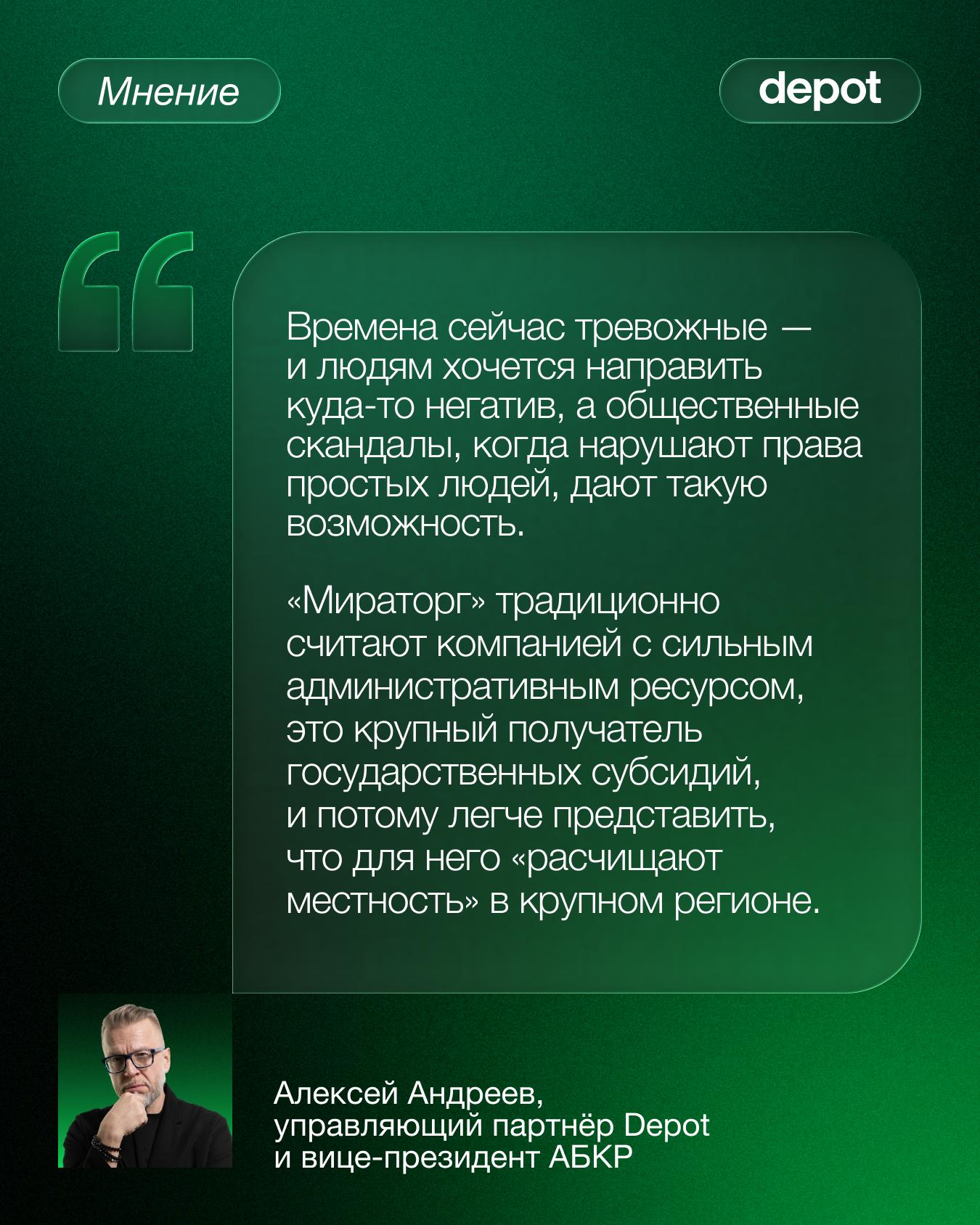 Управляющий партнёр Depot Алексей Андреев объясняет этот негатив общим фоном тревожности. Он отмечает, что в такие периоды людям важно выплеснуть эмоции, а резонансные кейсы дают для этого повод. Подробнее — в материале Shoppers.