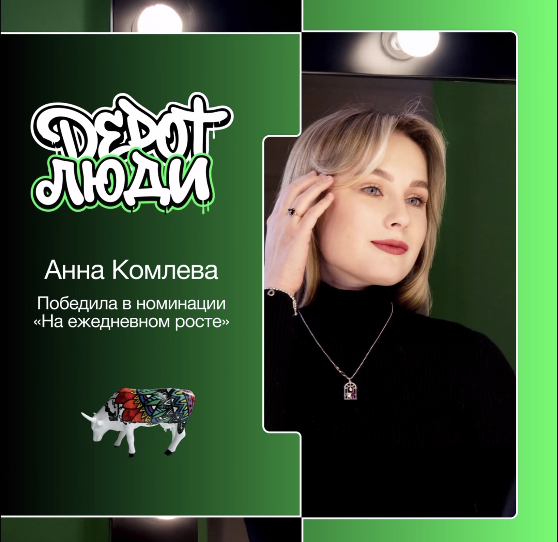 В номинации «На ежедневном росте» победила старший дизайнер Depot Аня Комлева!Прошлая победительница передала почётное звание, славу, а главное — торжественную корову, которая теперь занимает треть рабочего стола Ани и, надеемся, радует её.