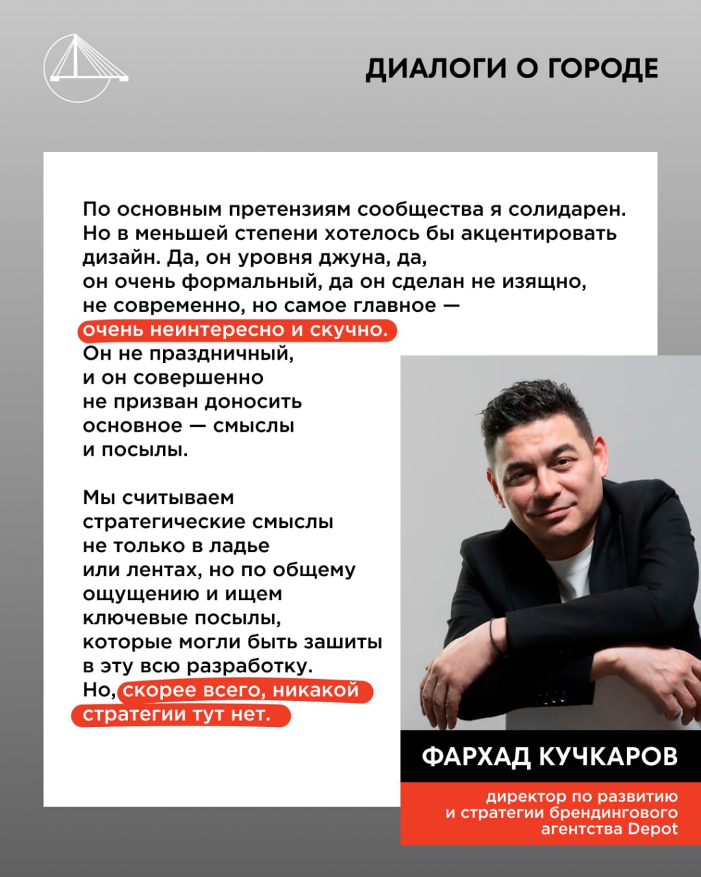 Фархад Кучкаров, директор по развитию и стратегии Depot, поделился честным мнением относительно нового дизайна и логотипа города