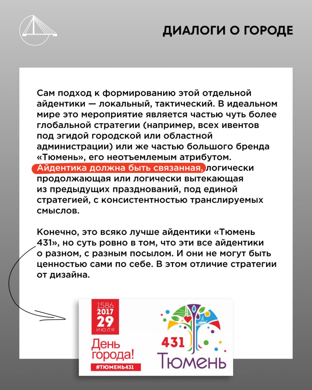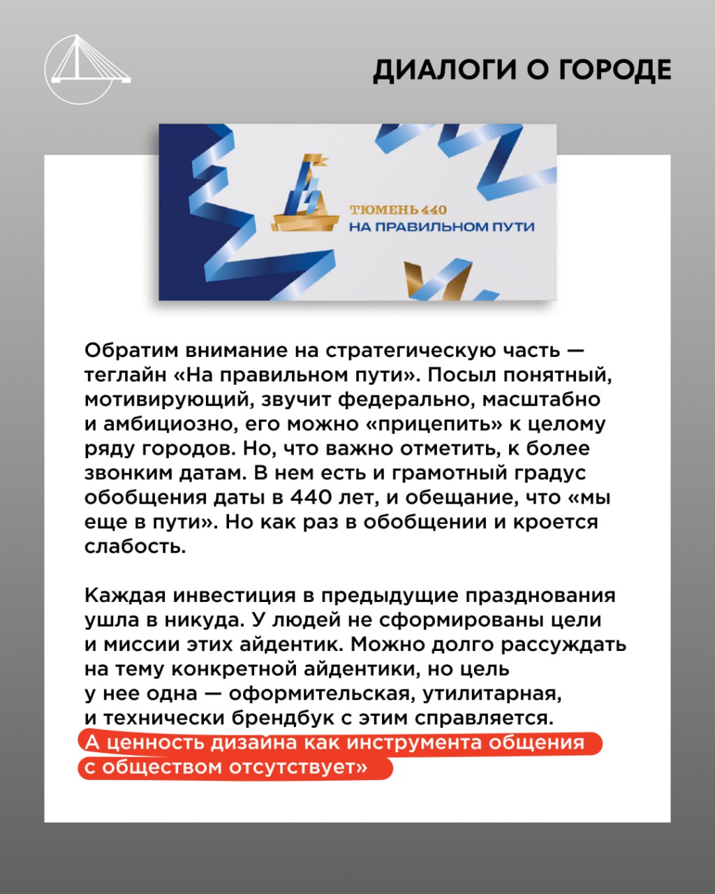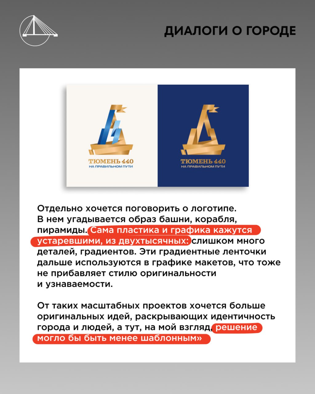 Недавно в Depot обратились с интересным запросом: прокомментировать «юбилейный» ребрендинг г. Тюмень. Спойлер: местное дизайн-сообщество разнесло всё в пух и прах