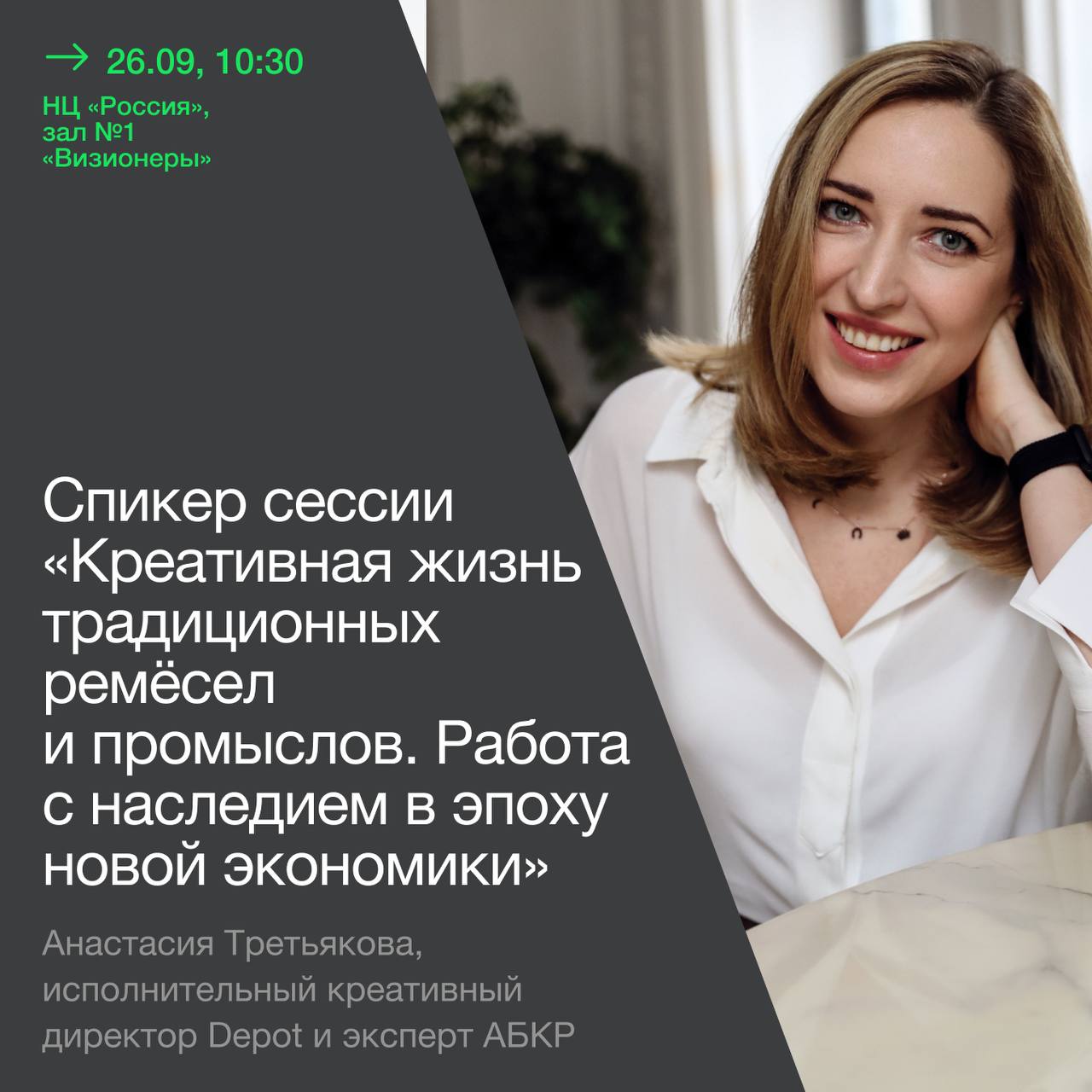 Анастасия Третьякова, исполнительный креативный директор Depot, обсудила на сессии стратегии развития народных промыслов: от брендинга и поддержки до современных маркетинговых инструментов для вывода продукции на новый рынок